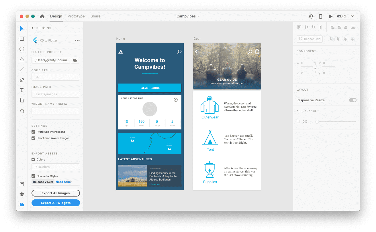 - adobe_xdプラグインのソースをダウンロードしてきて、example直下にあるCampvibes.xdファイルを開く。